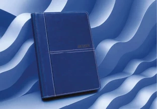 wycięte registry 2 rzędowe, perforacja narożników, zaokrąglone rogi, okładka z łączonej ekoskóry termoprzebarwialnej, obszyta, rok – tłoczony