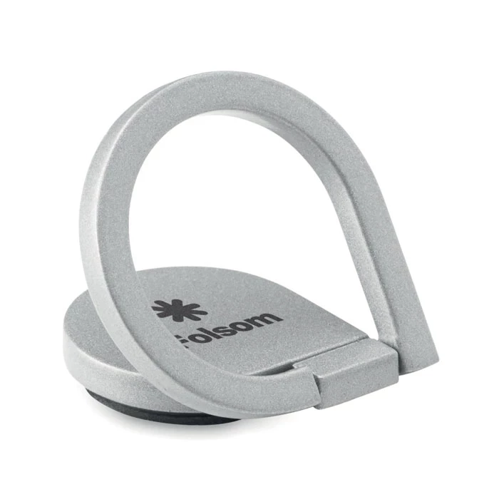 Uchwyt na telefon zakładany na palec, z cynku. Mocowany za pomocą warstwy samoprzylepnej 3M.